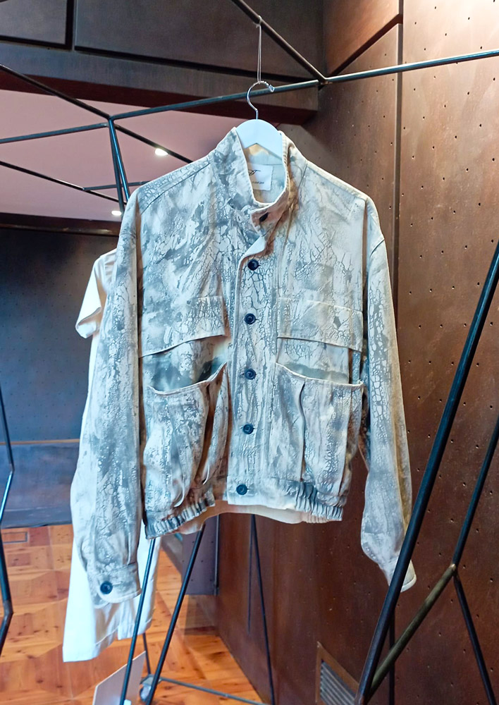Tutti i capi presentati sono stati realizzati con tessuti nati come protezione per i ghiacciai e rinati per vestire il corpo. Il risultato è una moda che coniuga estetica, innovazione e rispetto ambientale, dimostrando come sostenibilità e creatività possano coesistere. Come la giacca progettata da Tiziano Guardini, che presenta una texture ricavata da un processo di tintura innovativo, creato da Tintoria Emiliana, ottenuto attraverso diversi passaggi di trasformazione dell’argilla e lavorazioni manuali. Oppure la “Glacier Jacket” di Blue of a Kind, prodotta in collaborazione con Marchi & Fildi e Candiani Denim, che rappresenta la concretizzazione della sinergia virtuosa tra le parti coinvolte.