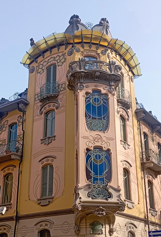 E poi ancora opifici, bagni pubblici, ospedali, scuole, monumenti celebrativi, luoghi di culto (la chiesa di Santa Elisabetta, unico esempio in stile Liberty d’Italia), con facciate e balconi riccamente decorati con magnifici motivi ornamentali, in cui linee asimmetriche si intrecciano a forme sinuose e gentili ispirate al mondo naturale, spesso cariche di simbolismo e significati nascosti.